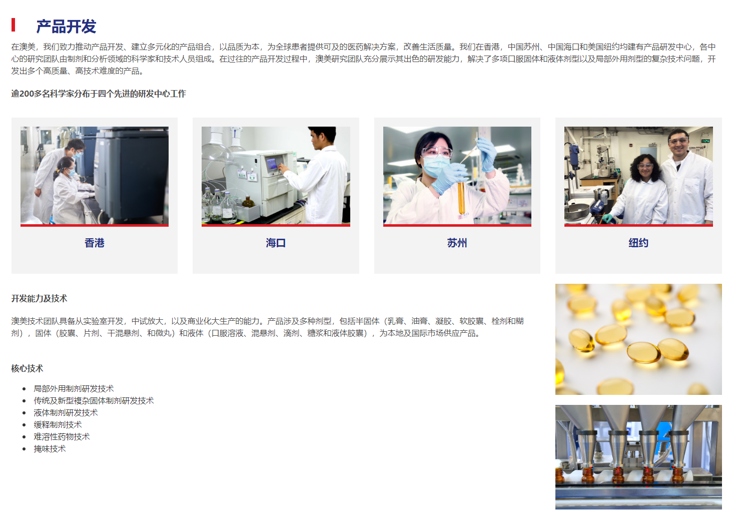 我們的業務涵蓋了產品開發到注冊、制造和市場營銷的方方面面。澳美產品線覆蓋皮科、兒科、呼吸科和骨科等多種治療領域,并擁有了領先的市場地位。全球6000多名員工不斷追求卓越,提供高品質產品和優良的客戶服務。我們的團隊力求將藥品和健康產品的研發、制造和商業化做到極致。